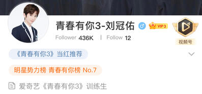 Search for Guanyou on Weibo (@青春有你3 - 刘冠佑)