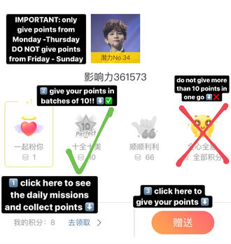 Give your points in BATCHES OF 10 POINTS each time (pic 1, 2️⃣ and 3️⃣ emoji)